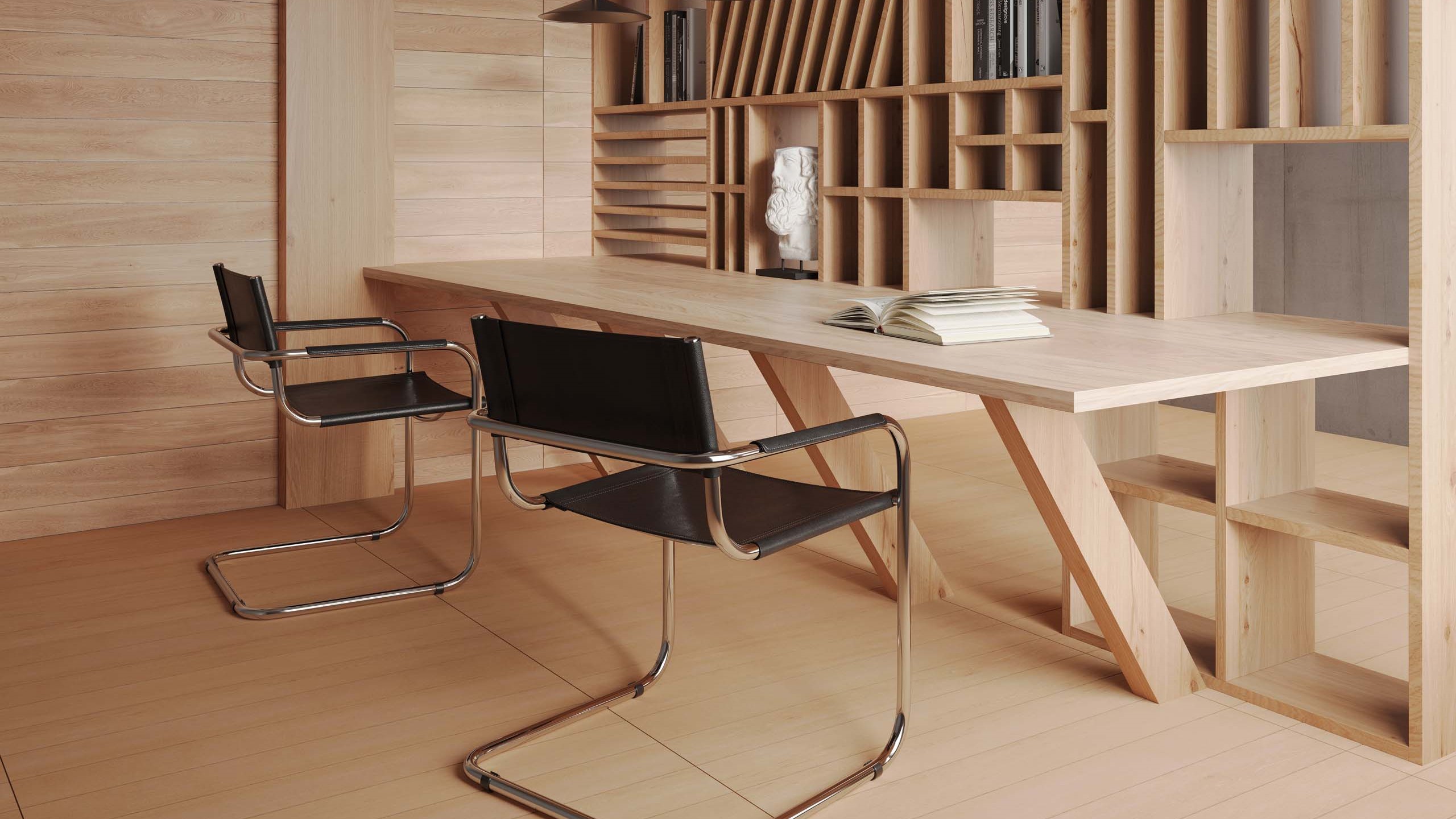 Нейтральная деревянная отделка меняет цветовую «температуру», в зависимости от освещения и расположенных рядом предметов. Это можно использовать, чтобы добиться нужной колористики.