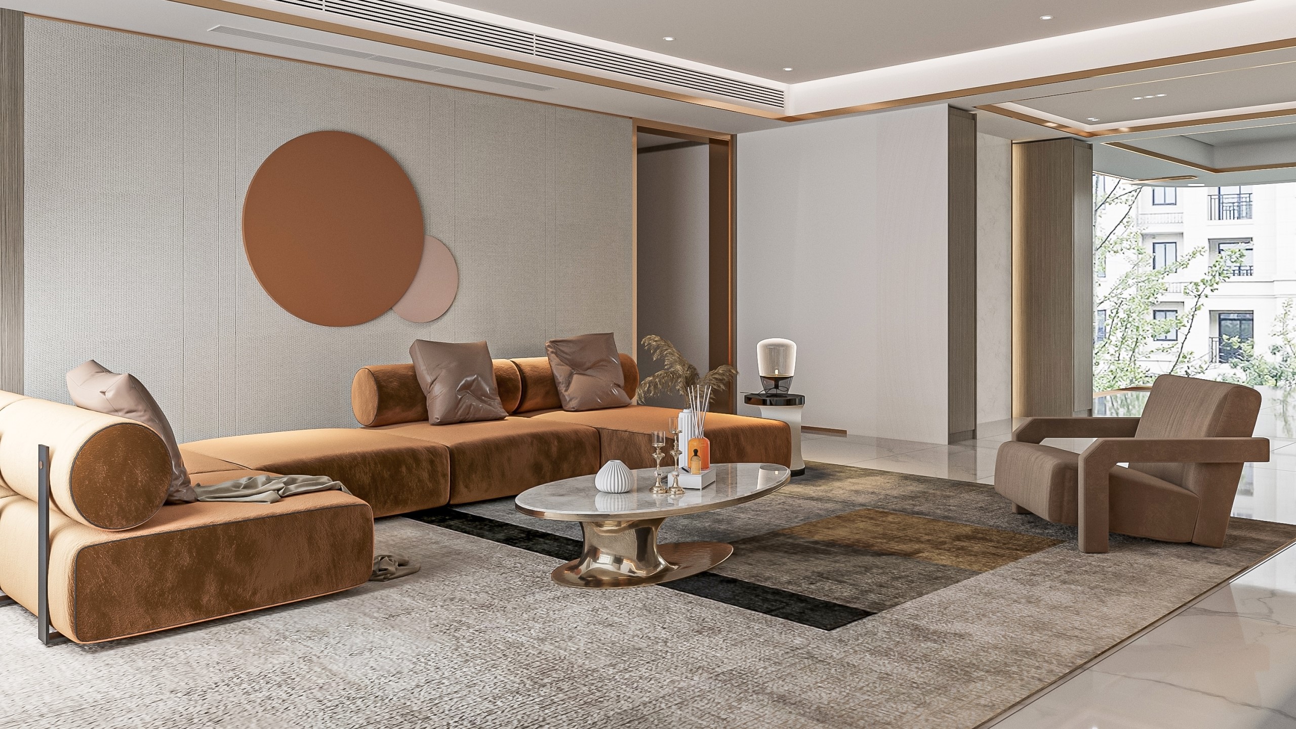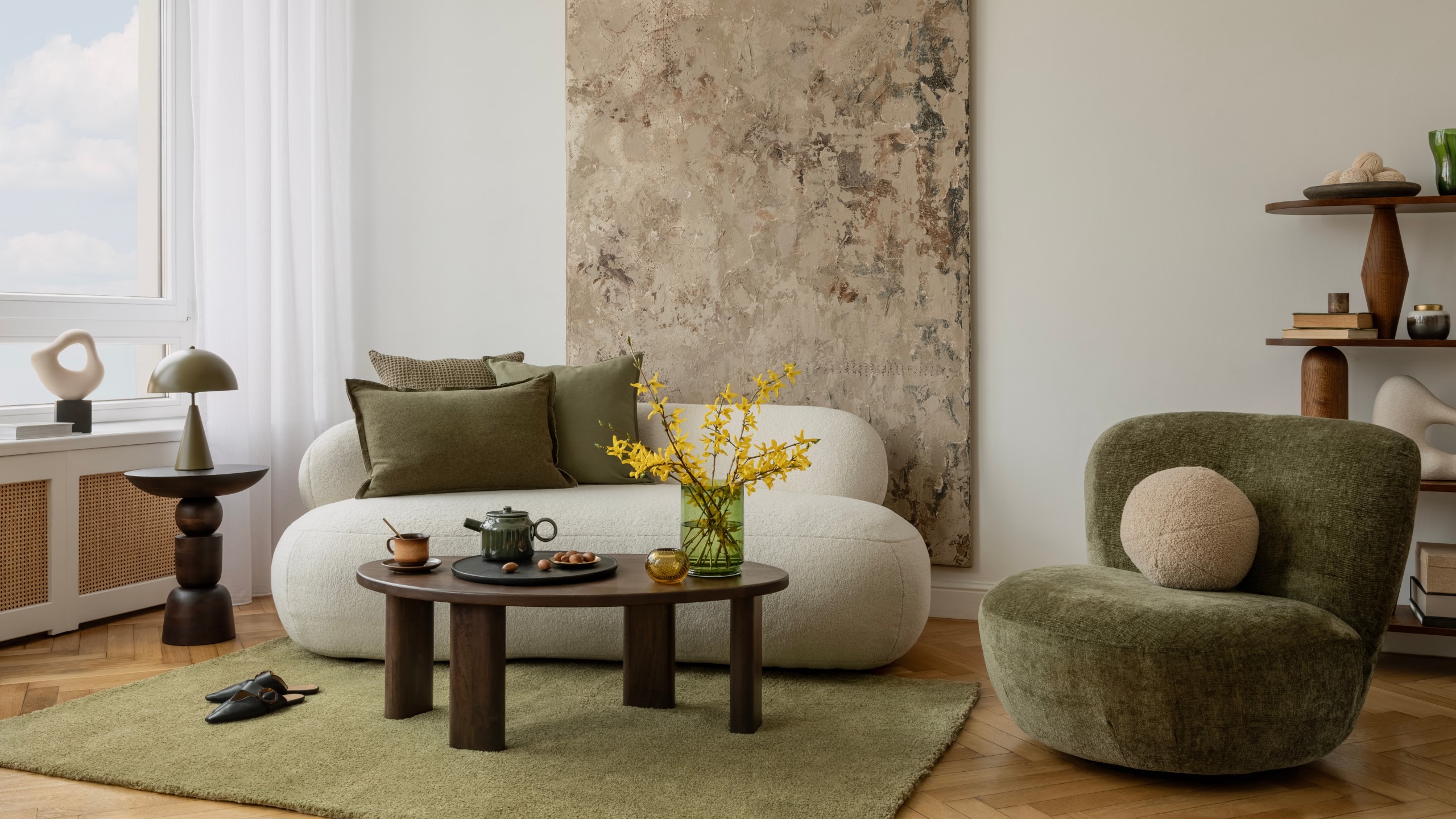 Круглые и овальные ковры смягчают пространство, сглаживают углы и визуально облегчают композицию. Особенно уместны в зонах отдыха, в небольших гостиных и в интерьерах с активной геометрией мебели.