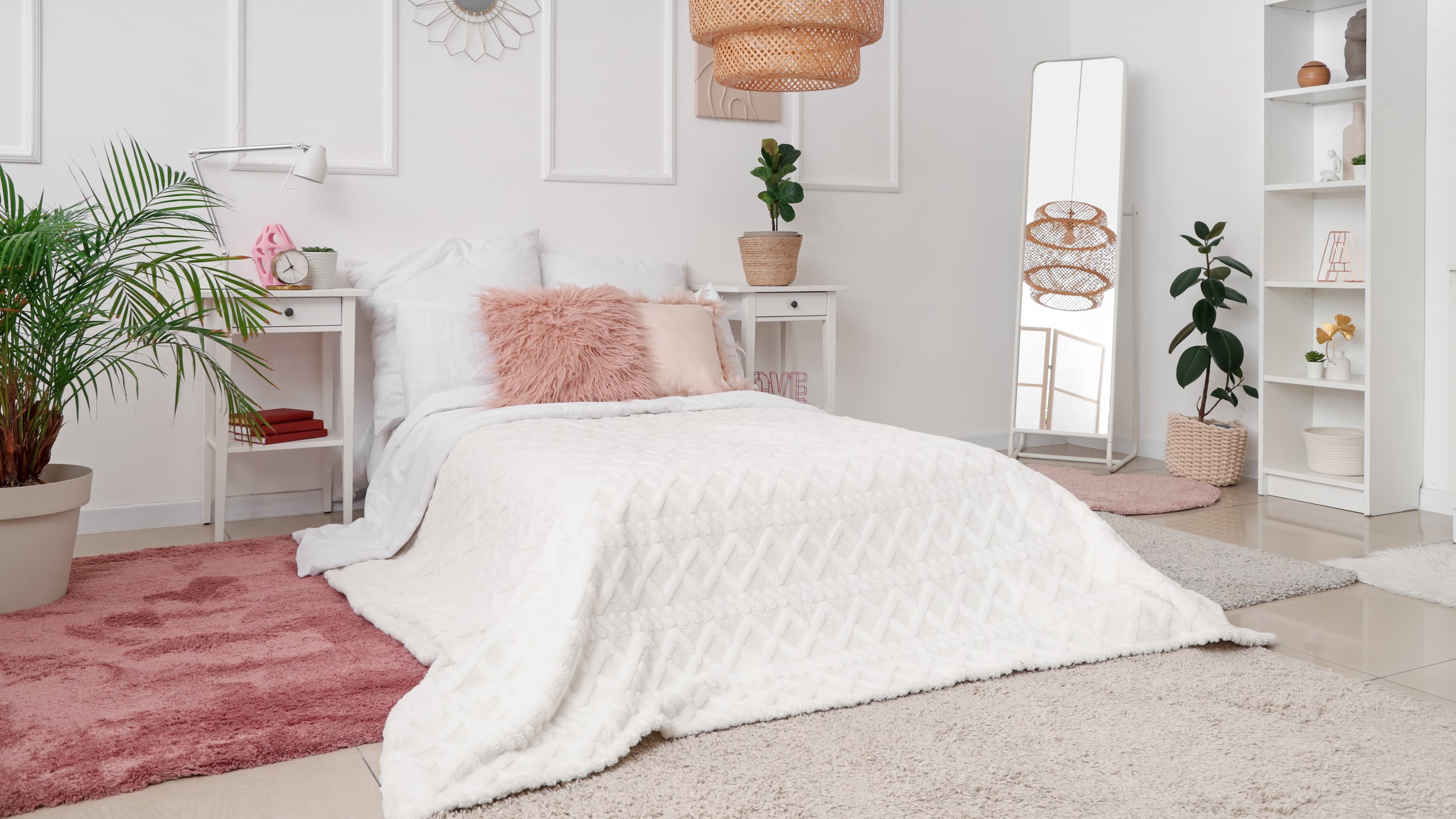 Крупный ковер под кроватью должен иметь вылет не менее 50–70 см с боковых и фронтальной сторон.