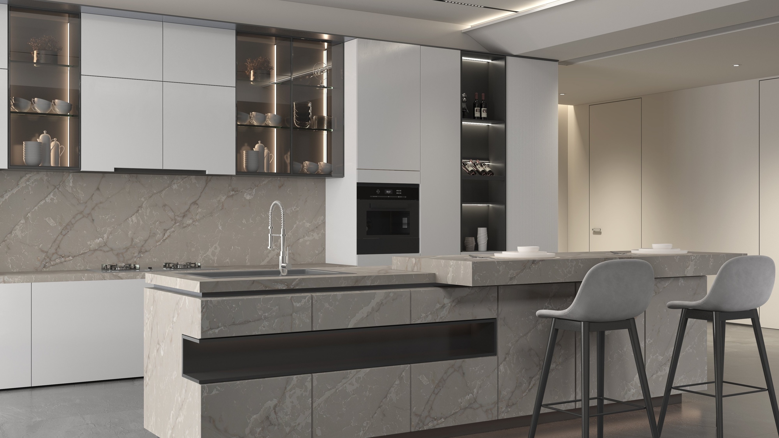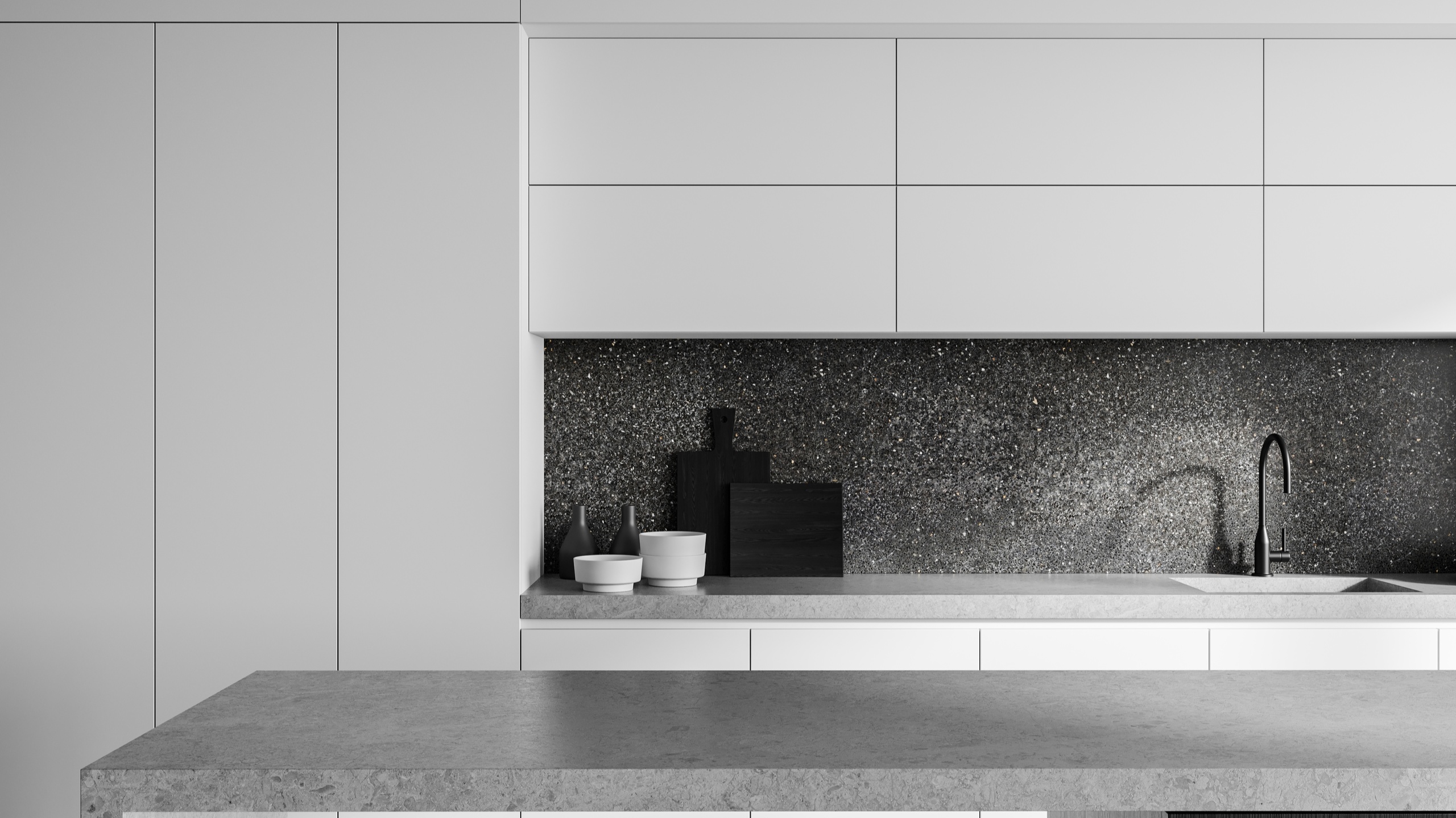 Серо-белая кухня хорошо адаптируется под разный метраж — от компактных помещений до просторных кухонь-гостиных. Серый оттенок практичен в быту: он менее маркий, чем чисто белый, и помогает скрывать следы ежедневного использования. В качестве основы для рабочих зон часто выбирают керамогранит с текстурой бетона или мрамора — такие решения органично дополняют современный интерьер и защищают поверхности от влаги и загрязнений.Преимущества и нюансы цвета