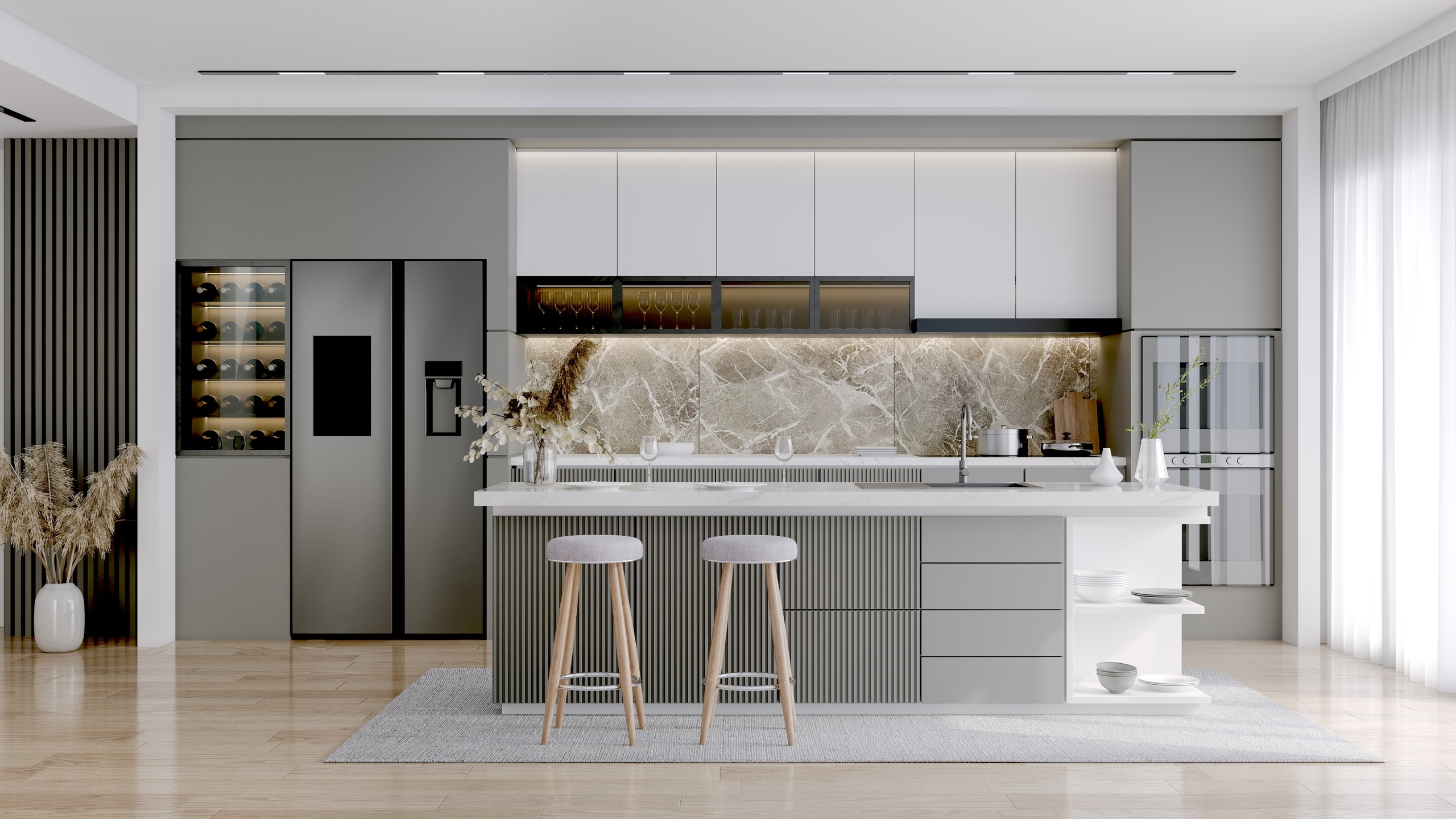 Дизайн бело-серой кухни считается одним из самых универсальных решений для современной квартиры. Такое сочетание создает ощущение чистоты, визуальной легкости и аккуратности. Белый отражает свет и делает пространство более открытым, а серый цвет добавляет глубину и подчеркивает геометрию мебели.