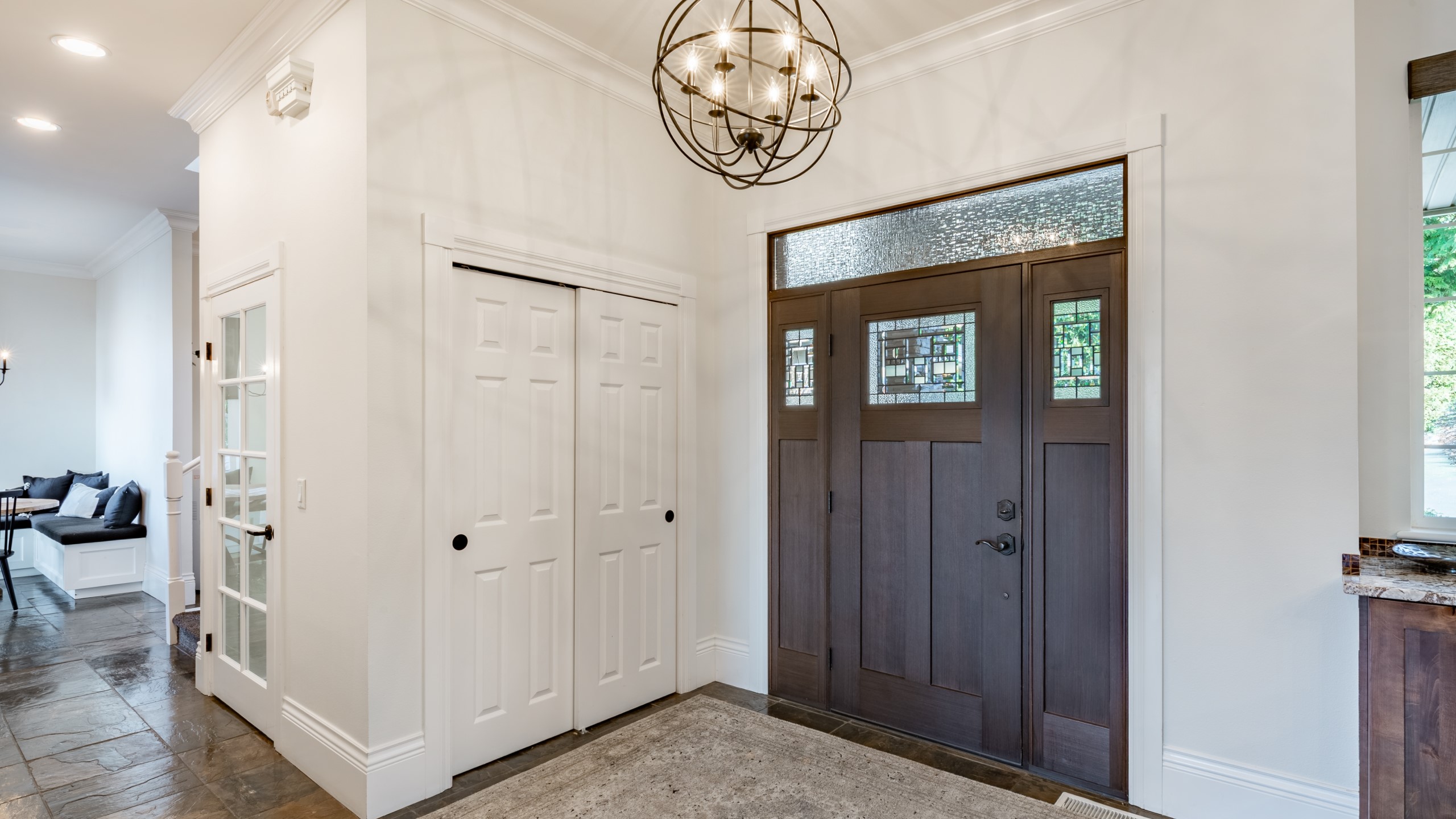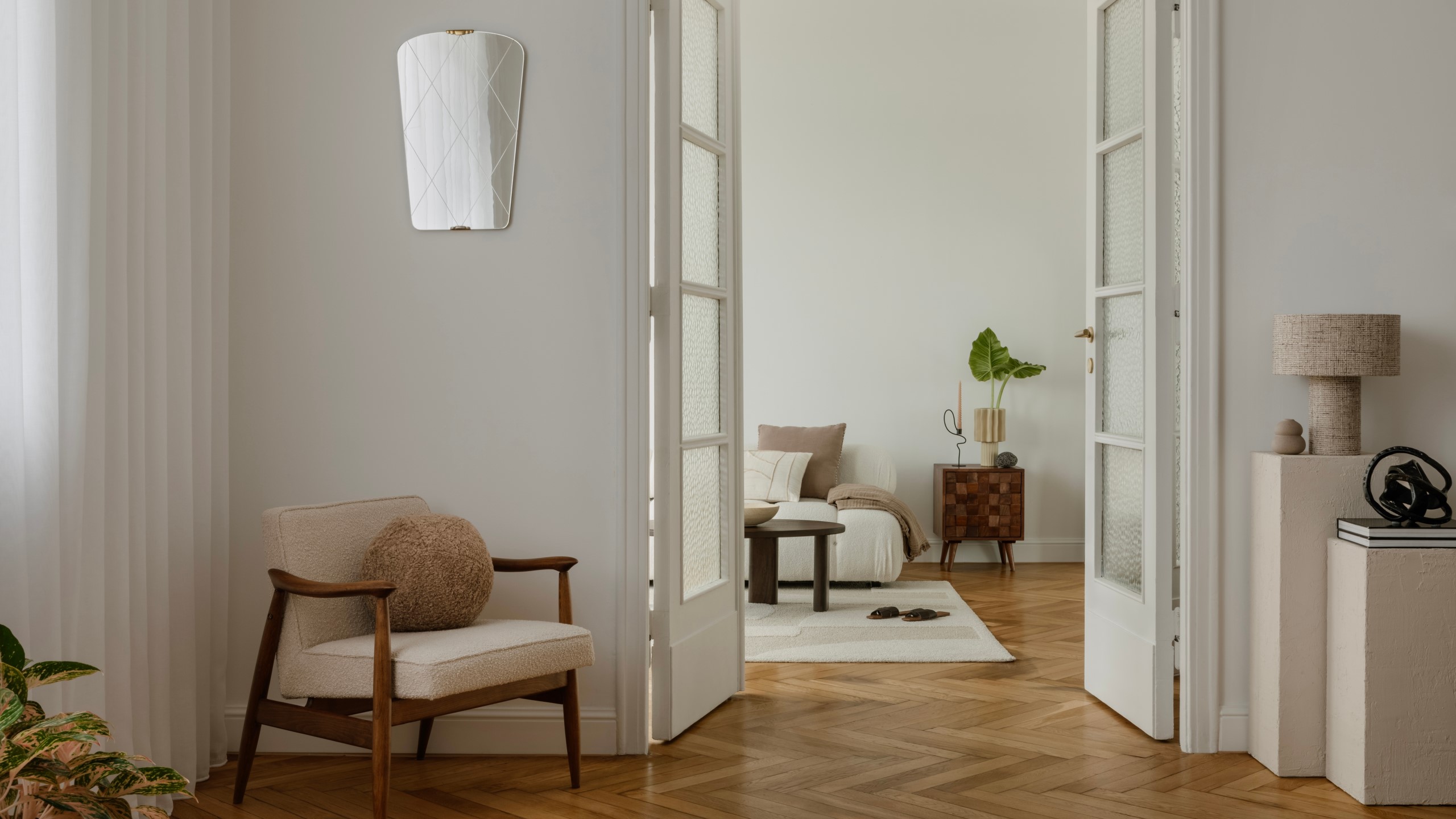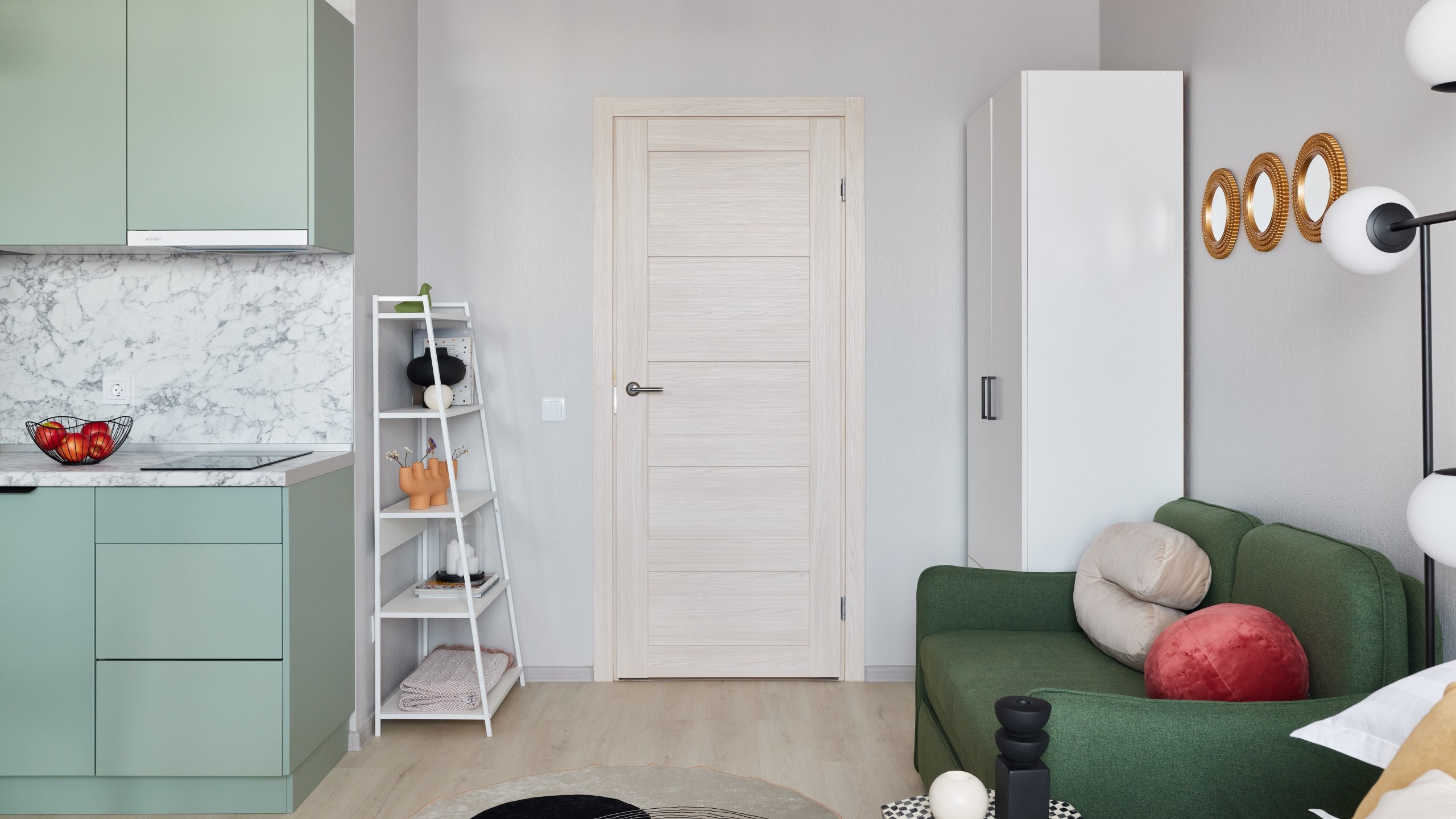 расставлять декоративные предметы интерьера возле дверей, например, небольшие консоли, напольные вазы или картины, чтобы добавить глубину и выразительность;