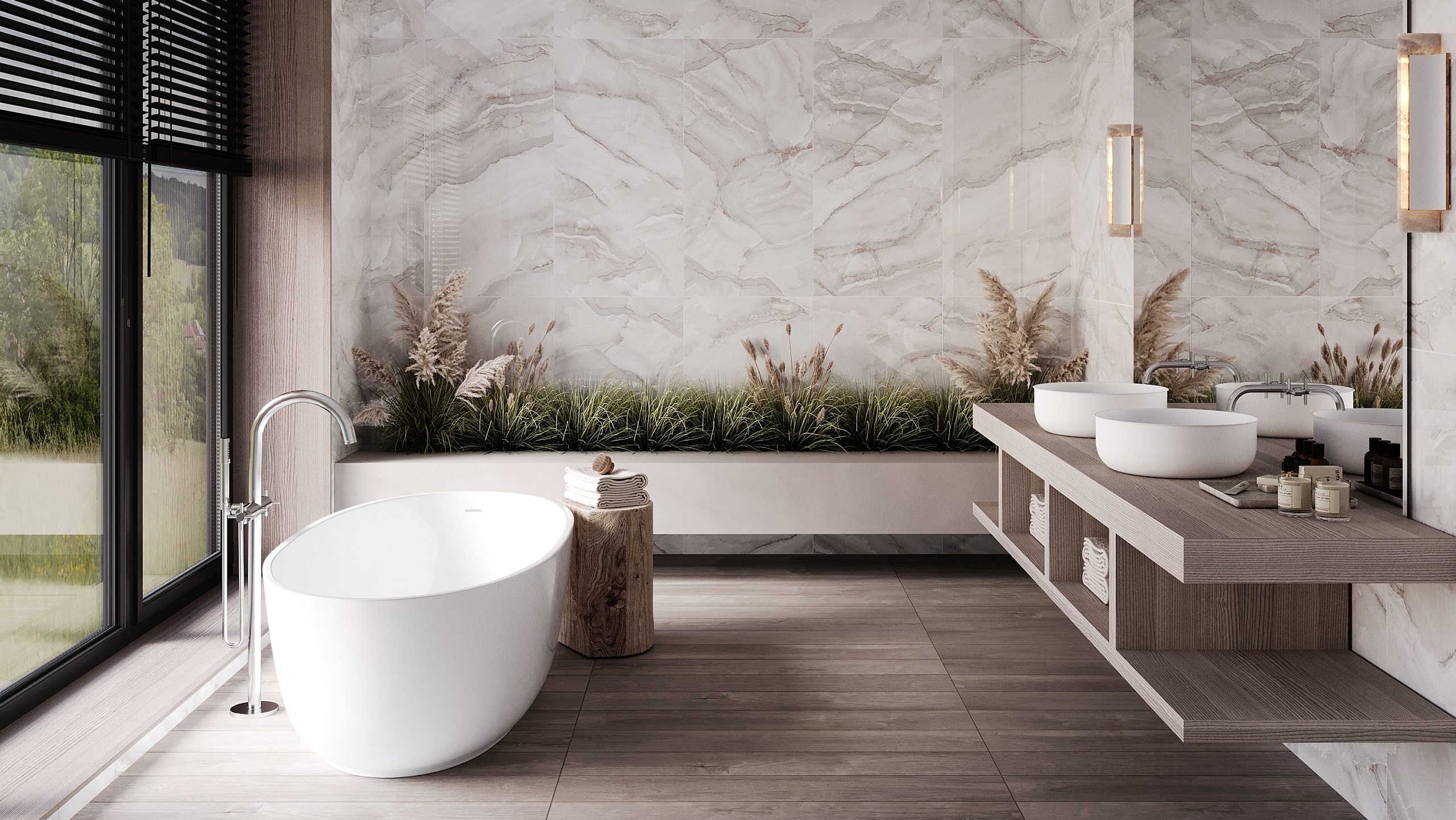 При выборе керамогранита для ванной комнаты ориентируйтесь на материалы с низким водопоглощением. Это поможет избежать образования плесени и продлит срок службы отделки.