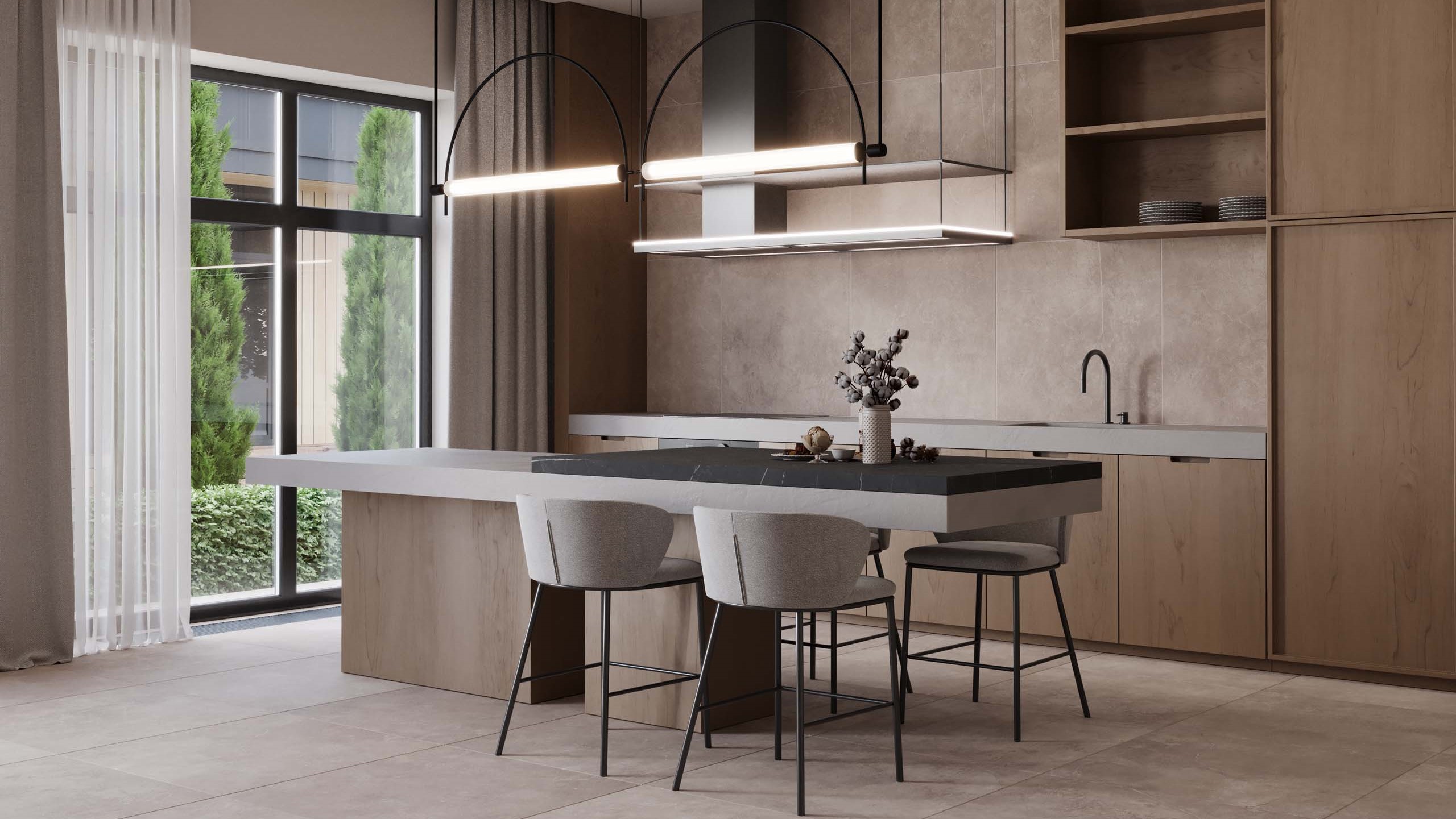 Чтобы матовый черный не перегружал пространство, используйте его для мебели с чистыми линиями — это добавит современности, но не сделает интерьер тяжелым. Сочетайте с теплыми нейтральными оттенками в отделке, кремовым или молочным.