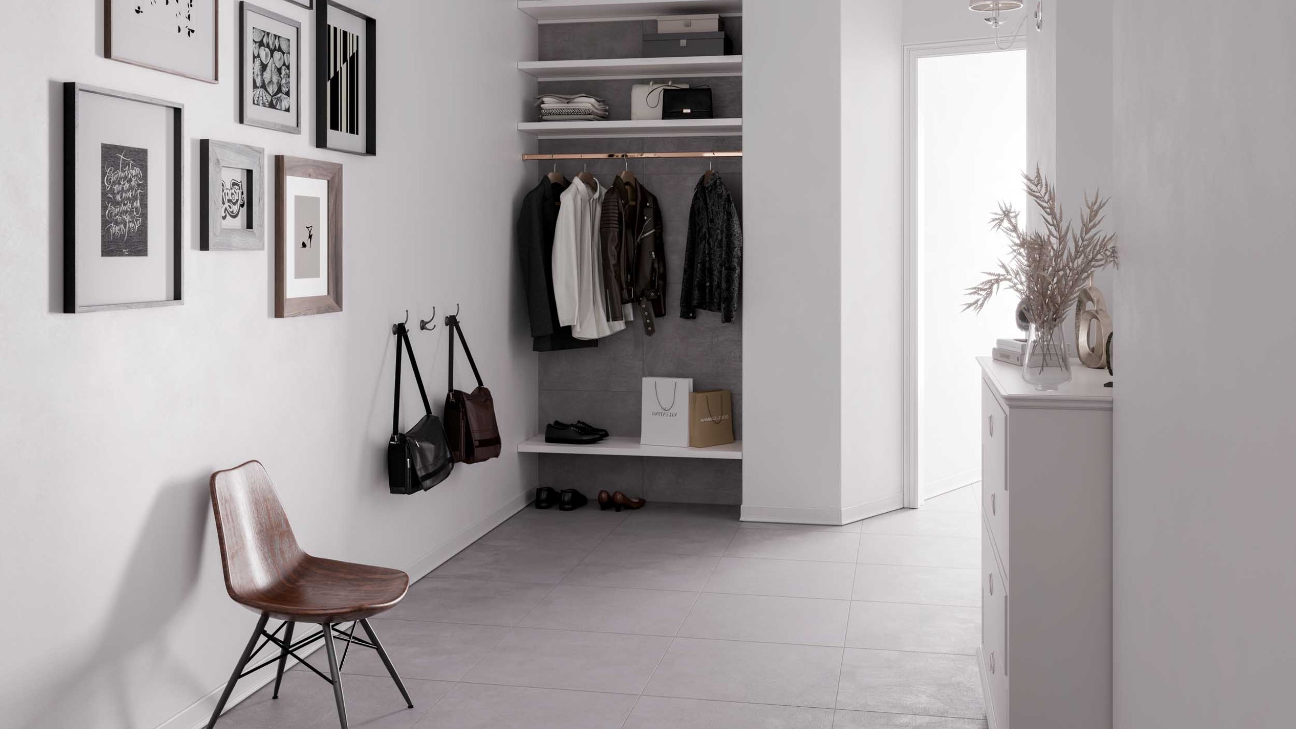 Коридор — зона с высокой проходимостью, поэтому здесь особенно важна аккуратность подрезки у входной двери и равномерность рядов. Чаще всего старт делают от дальнего угла укладки, что помогает минимизировать узкие подрезки на входе и сохранить симметрию видимого участка пола.