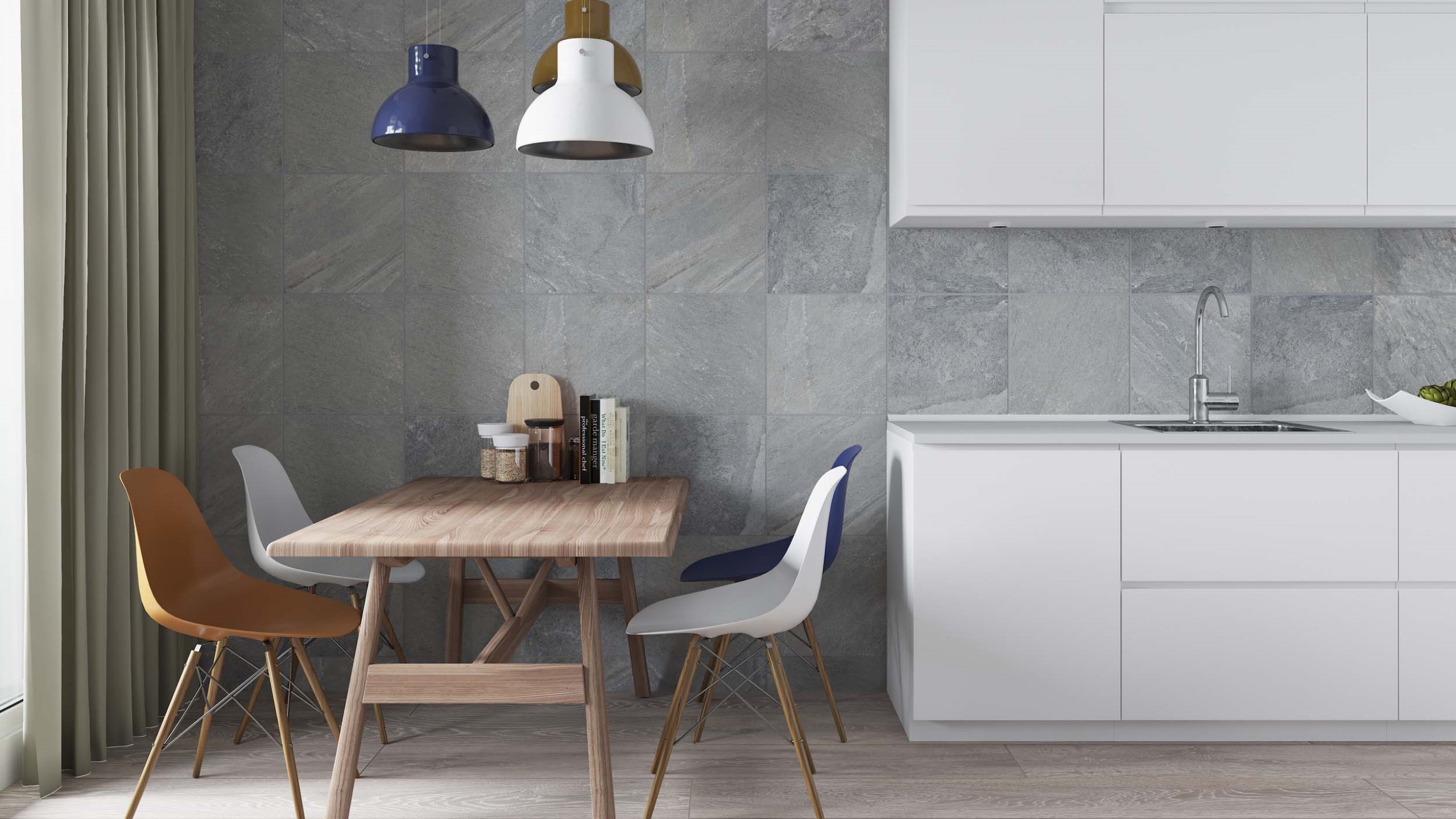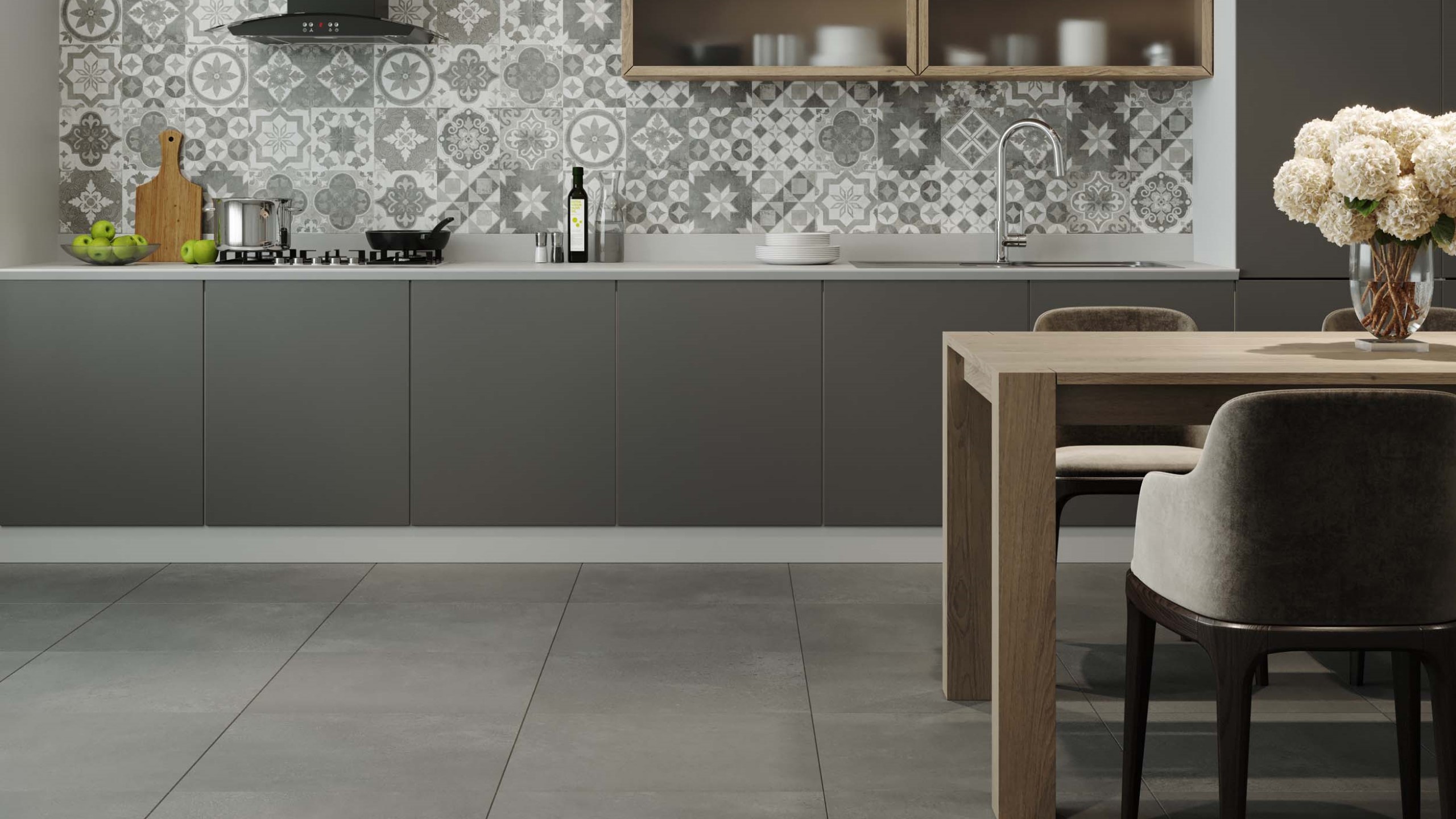 Пол, стены и фартук задают стиль всей кухни и создают основу для остального интерьера. В серой кухне важно выбирать материалы, которые подчеркнут глубину оттенков и добавят необычные фактуры, иначе пространство может казаться холодным и однотонным. Отличным решением для пола и фартука станет керамогранит с текстурой камня или бетона. Он отличается прочностью, устойчивостью к влаге, а разнообразие цветов позволяет подобрать вариант под любой стиль — от современного минимализма до уютного сканди.