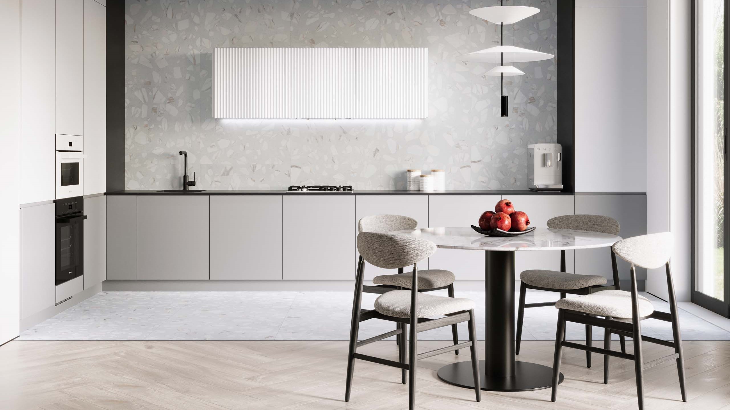 Детали играют не менее важную роль: ручки, профили и техника должны гармонировать с основным цветом кухни. Светло серые или темно-серые фасады можно дополнить металлическими или черными элементами, чтобы подчеркнуть стиль.