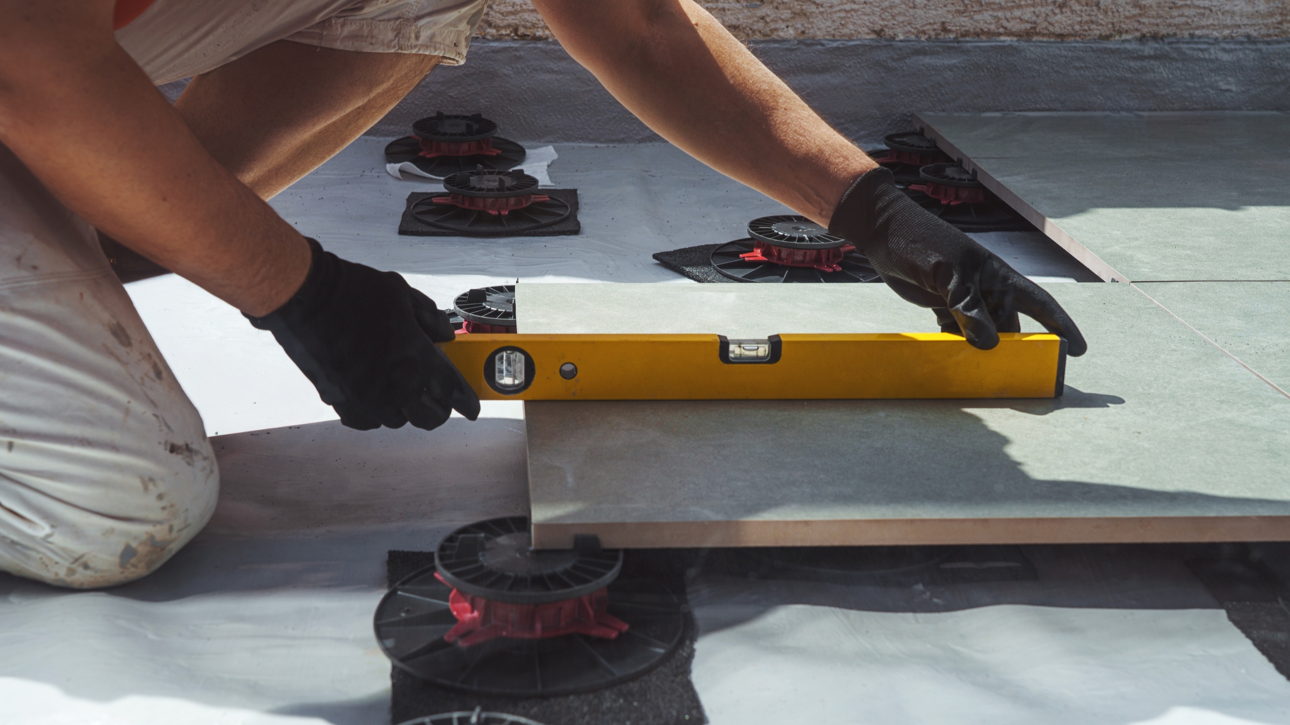 Контроль уровня. Проверьте, чтобы плитки находились на одном уровне.