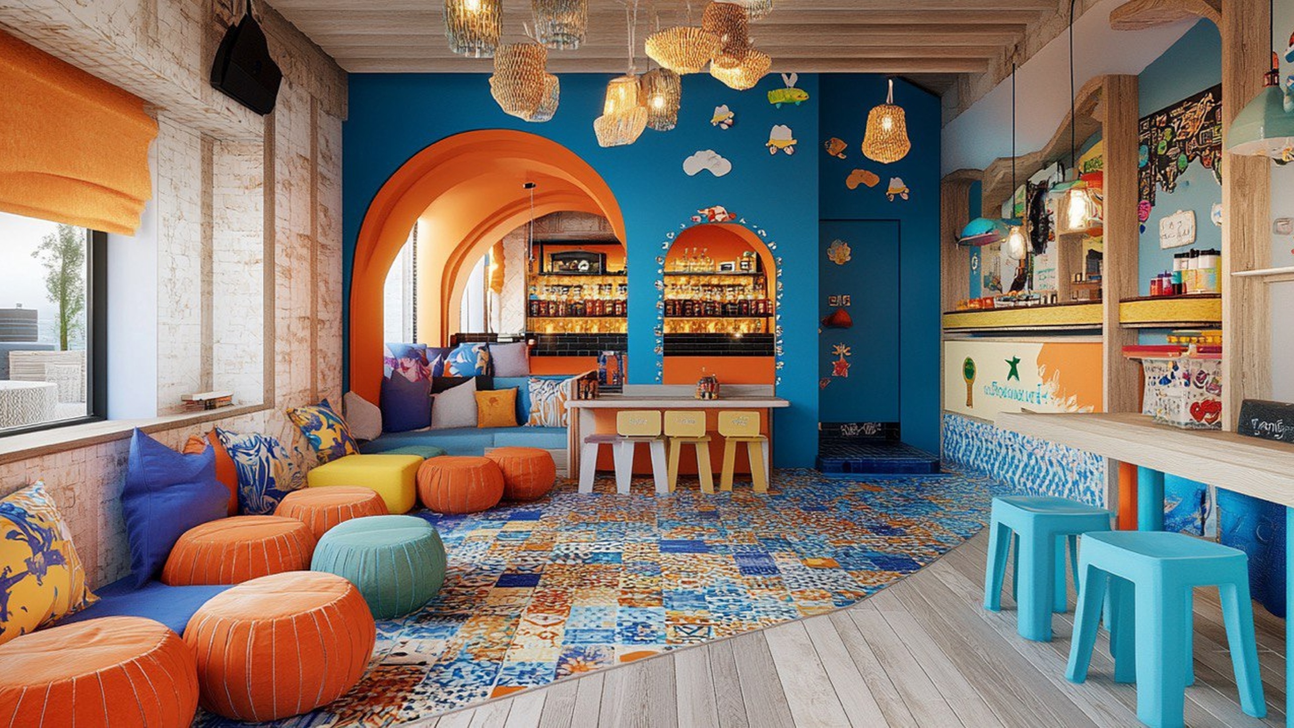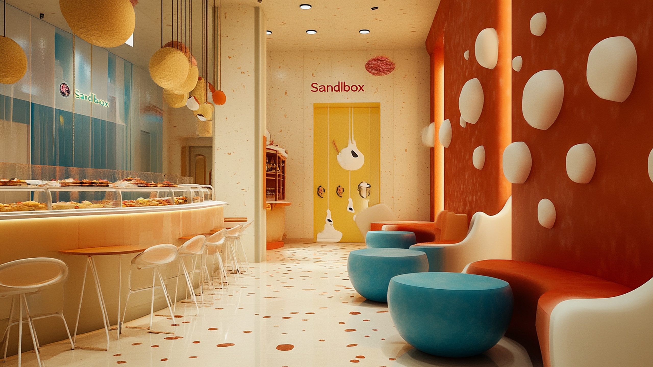Концепция проекта опирается на природный и культурный контекст Астрахани. Песок здесь — не абстрактная метафора, а часть ландшафта и памяти места: от Бэровских бугров до прикаспийских берегов. Пространство кафе делится на несколько автономных залов, что позволяет гибко адаптировать интерьер под разные форматы и условия размещения.