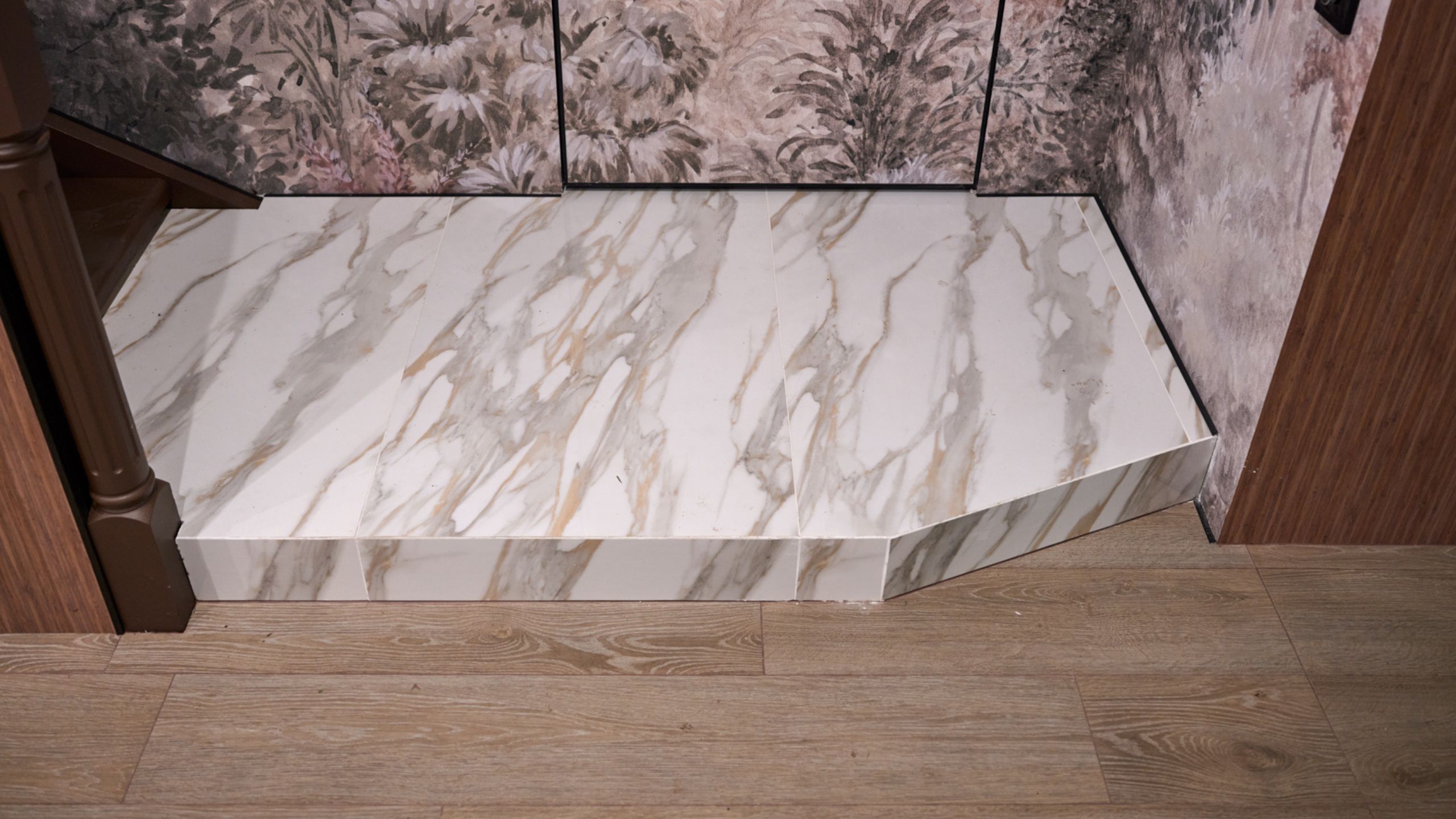 7 сентября на канале НТВ в эфир вышла программа «Дачный ответ». Дизайнер — Юрий Волков, который уже неоднократно работал с нашим керамогранитом — помог преобразить пространство частного дома. Кухню украсил пол из керамогранита Tramontana оттенка 02, который имитирует роскошную текстуру кварцита. Холл выложили керамогранитом Estima из коллекции Kraft Wood, оттенок 01, добавляющим уют и тепло пространству. Подиум и ступенька выполнены из коллекции Miramare с натуральным рисунком мрамора, который подчеркнул стиль и статус помещения. Завершают композицию оконные откосы из новой линейки Ametis Exotica, декорированные элегантным керамогранитом EXS501.